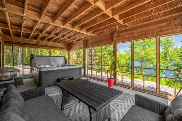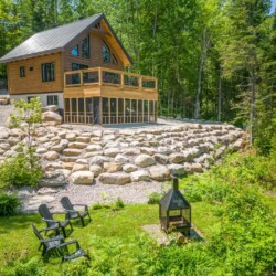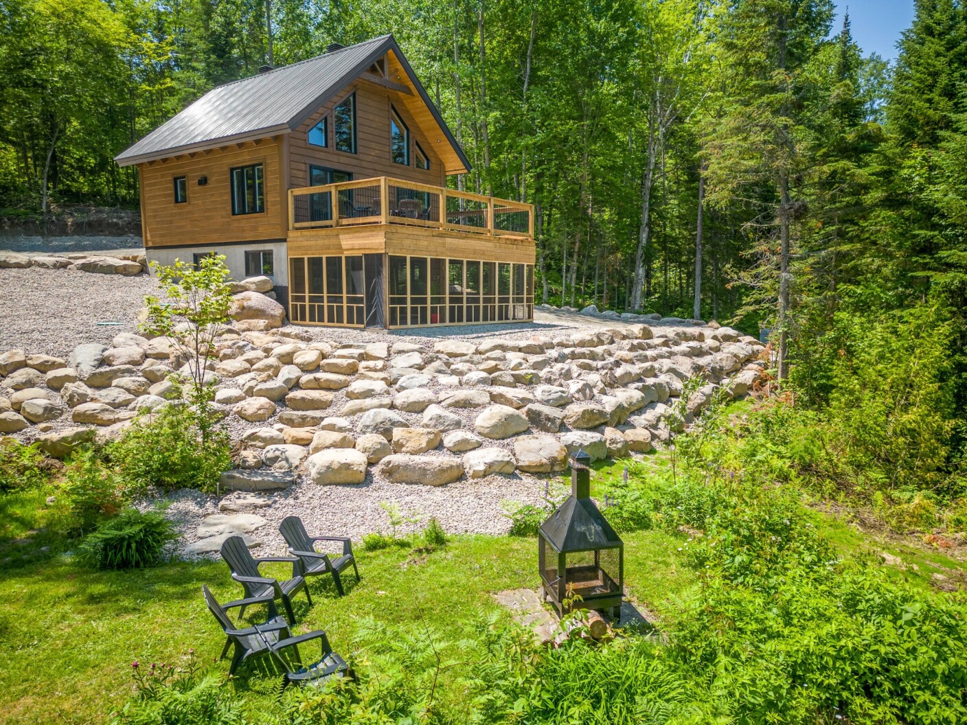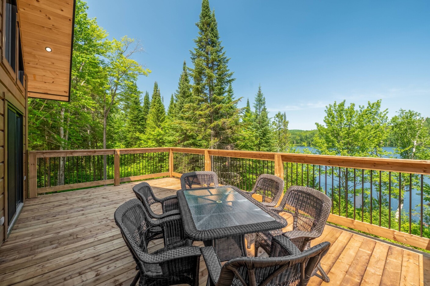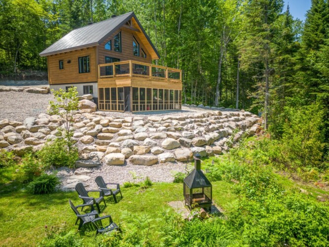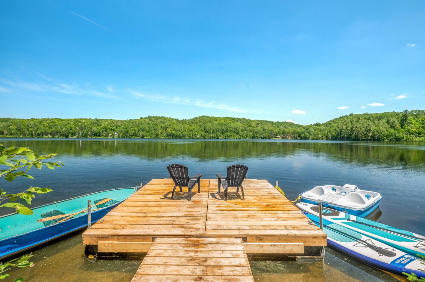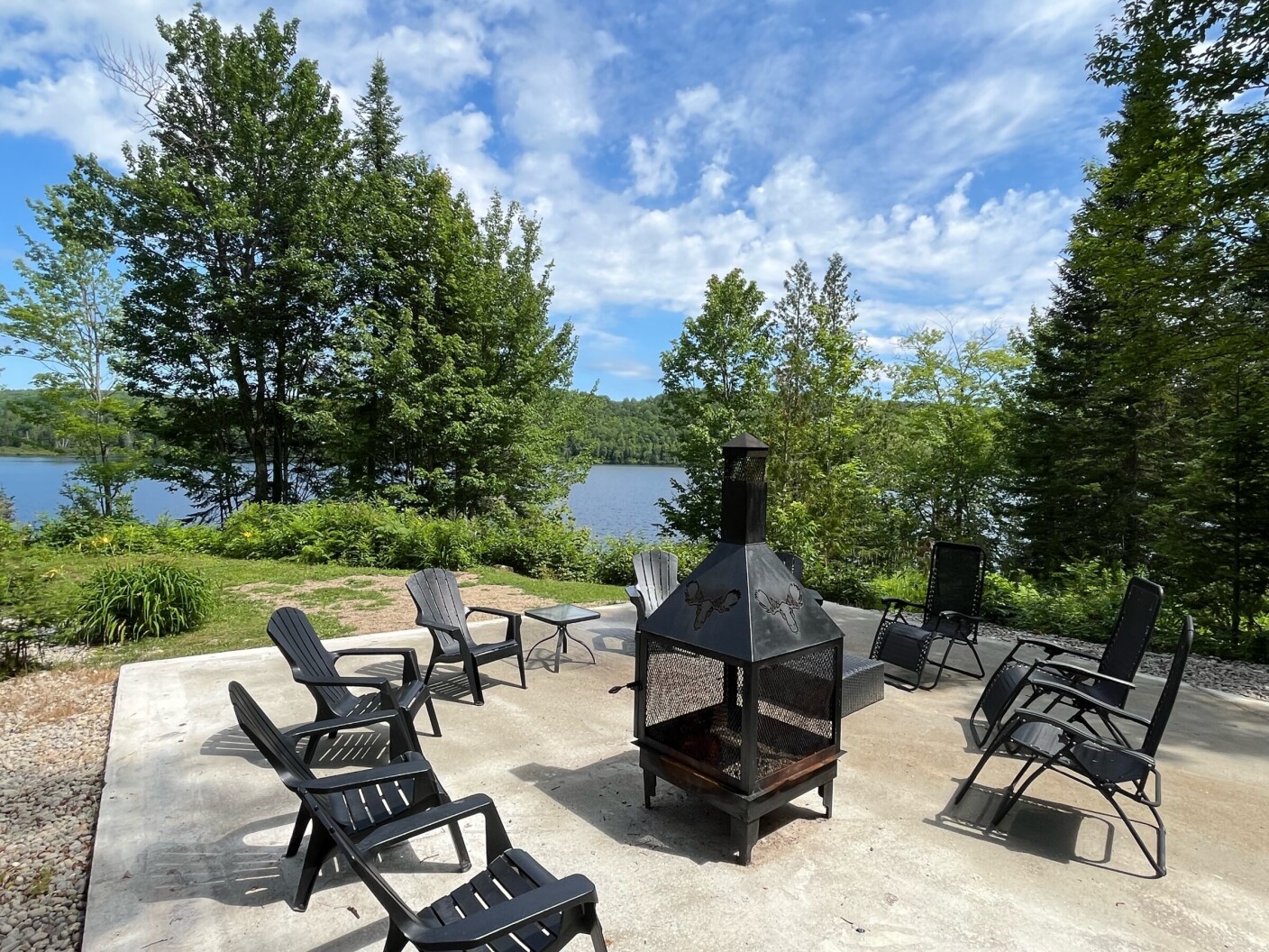 Spa- Accès à l’eau- BBQ- Bord de lac- Cour arrière Foyer extérieur au bois (4 saisons)’ Patio Situé au bord de l’eau -Vue sur montagne