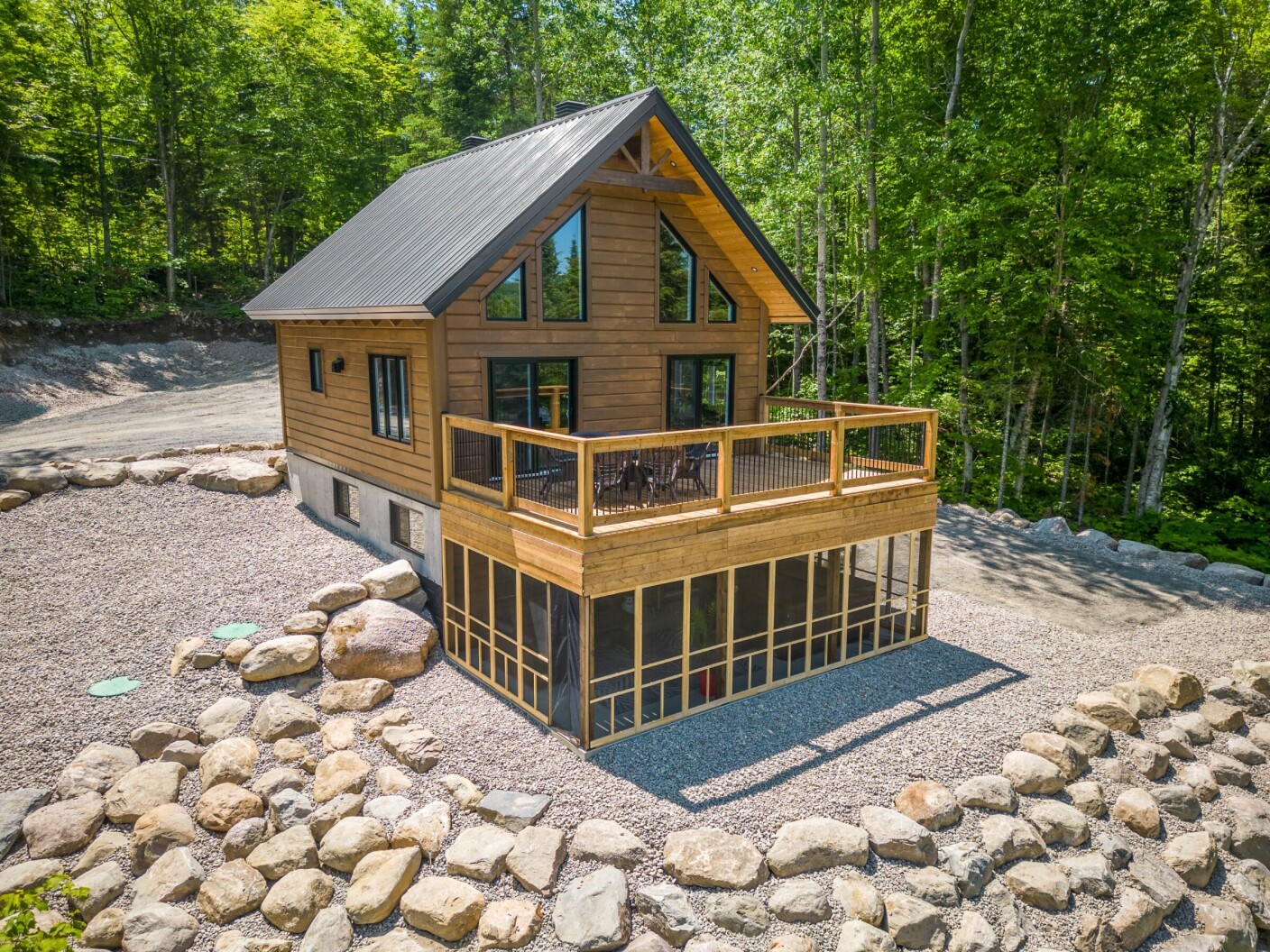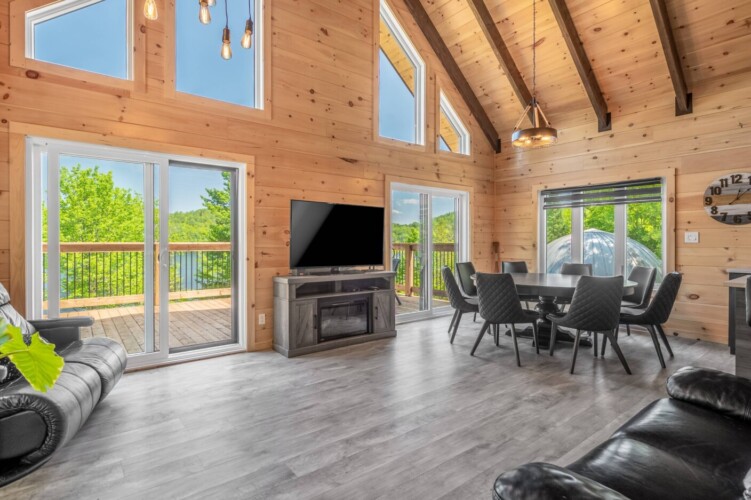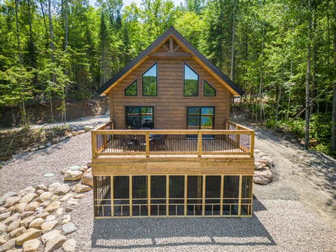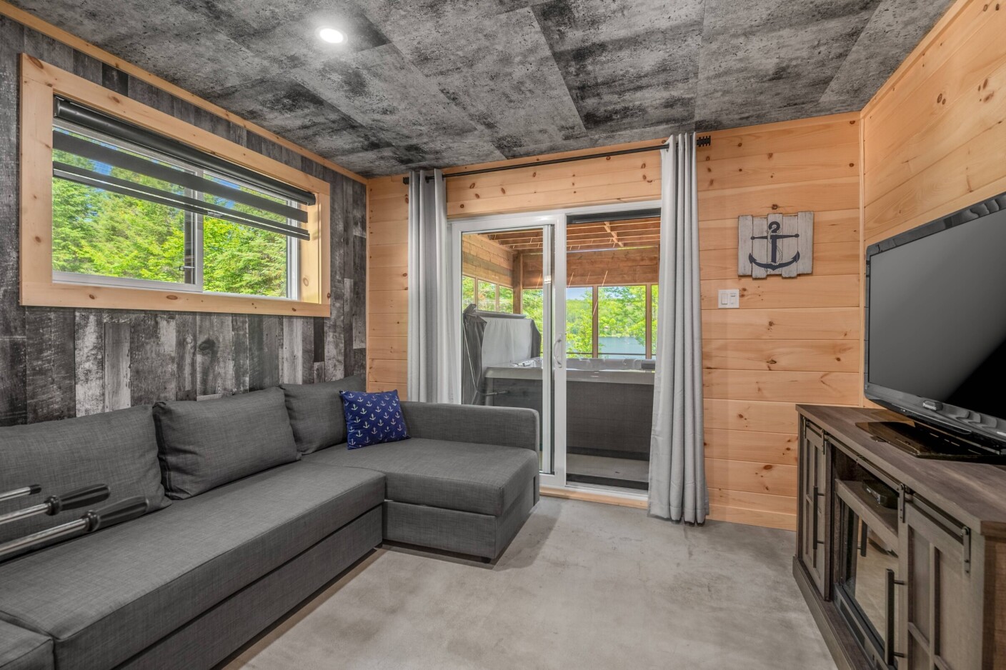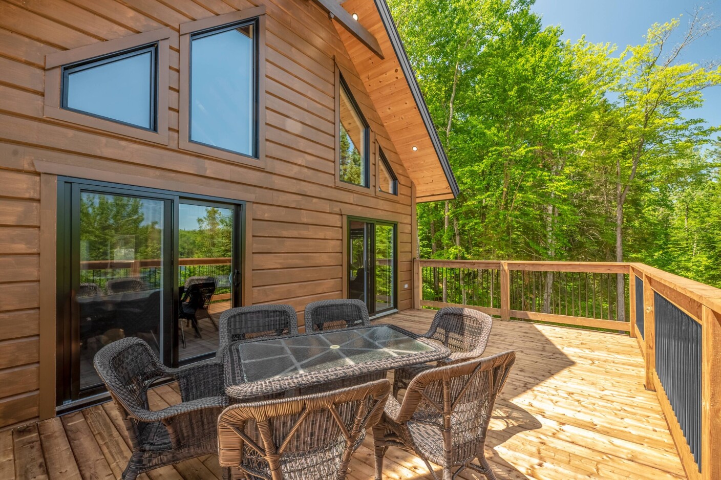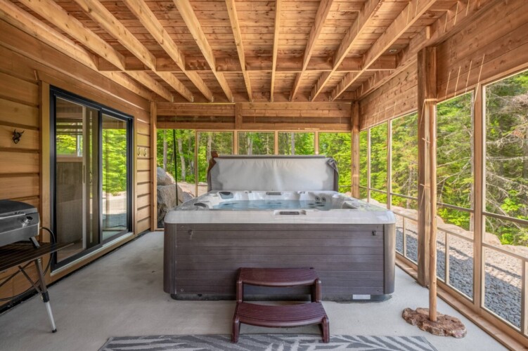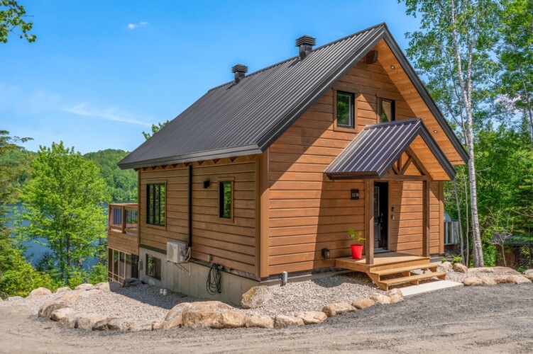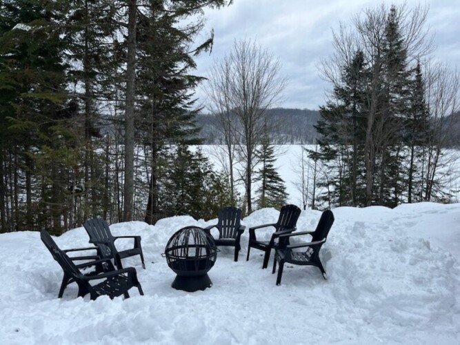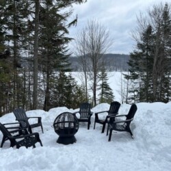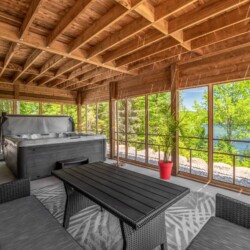 Spa- Accès à l’eau- BBQ- Bord de lac- Cour arrière Foyer extérieur au bois (4 saisons)’ Patio Situé au bord de l’eau -Vue sur montagne
