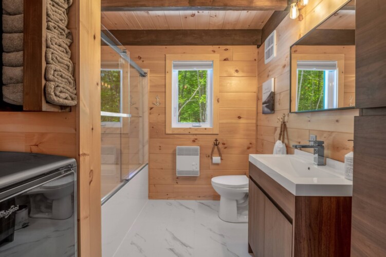 Air climatisé- Bureau de travail -Chauffage -Cintres dans les placards -Bain Cuisine -Laveuse à vêtements Planchers chauffant -Séchoir à cheveux- Sécheuse à vêtements