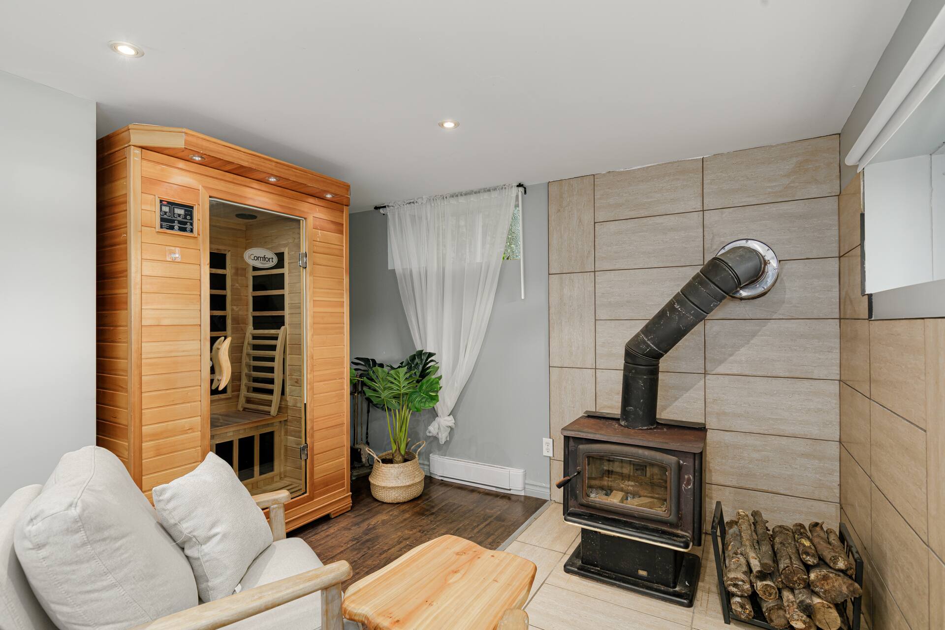 • Foyer à combustion lente (bois compressé fourni – hiver seulement)