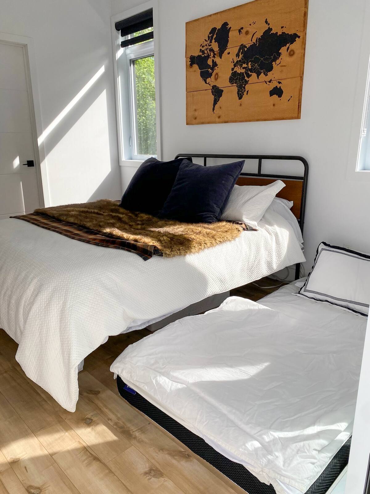 - Lit queen size 2 matelas au sol