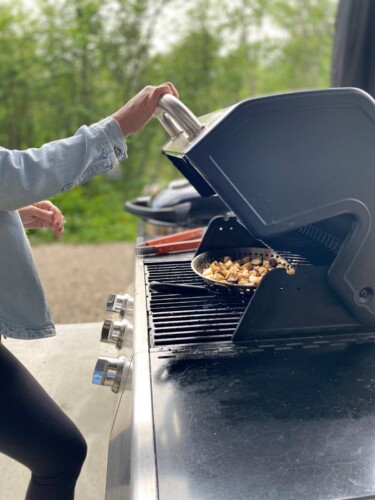 Il y a un barbecue à propane et un bbq à charbon à votre disposition. Le propane sera fournit, mais il vous faut amener votre propre charbon pour utiliser l’autre bbq.