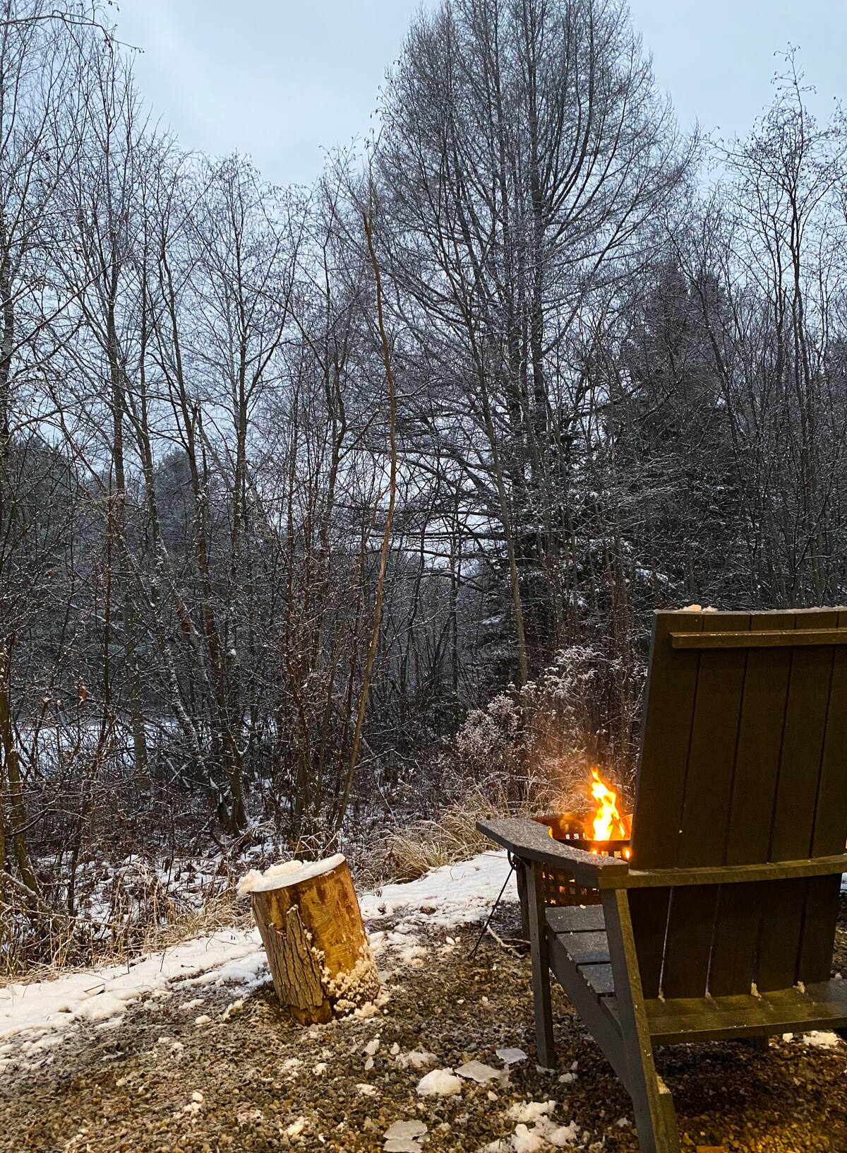 Un foyer intérieur et extérieur est à votre disposition. Le foyer intérieur fonctionne au propane. Vous devez apporter vos bûches pour utiliser le foyer extérieur.