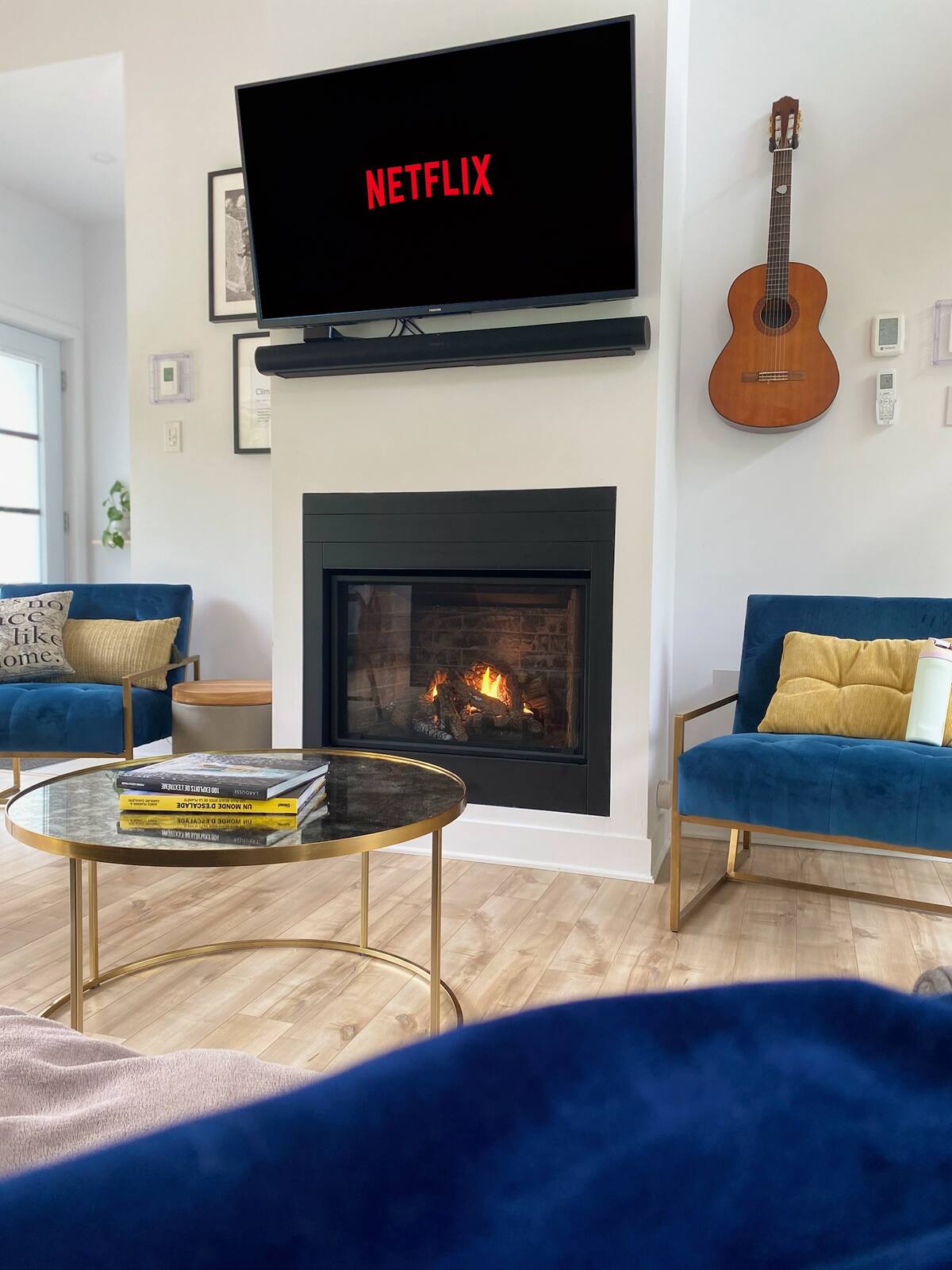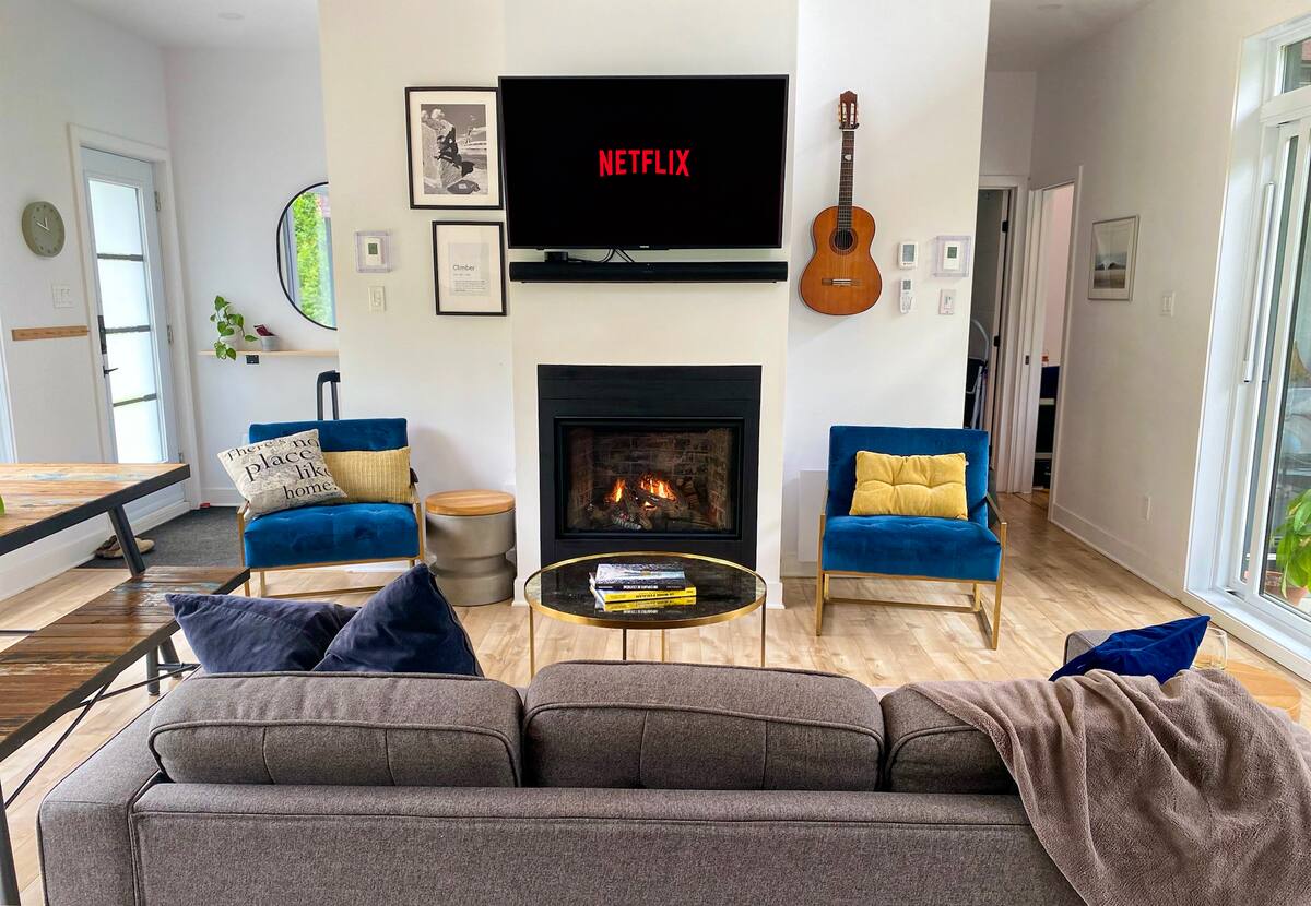 Nous avons une télévision intelligente avec un système Apple TV intégré dans le chalet, mais n’offrons pas de chaîne par câble. Vous aurez accès à des applications comme Netflix, Youtube, Disney + sur lesquelles vous pourrez connecter votre compte.