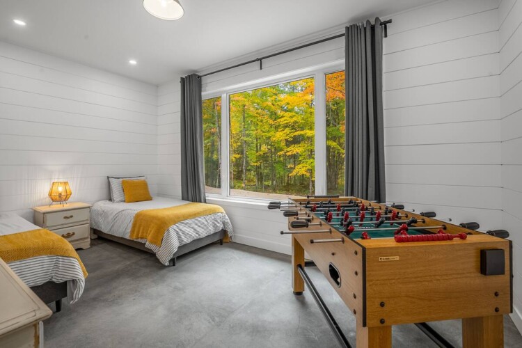 Nous fournissions Internet haute vitesse (fibre optique) idéal pour le télé-travail! Télévision intelligente avec Netflix. Une table de babyfoot ainsi que des jeux de société.