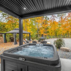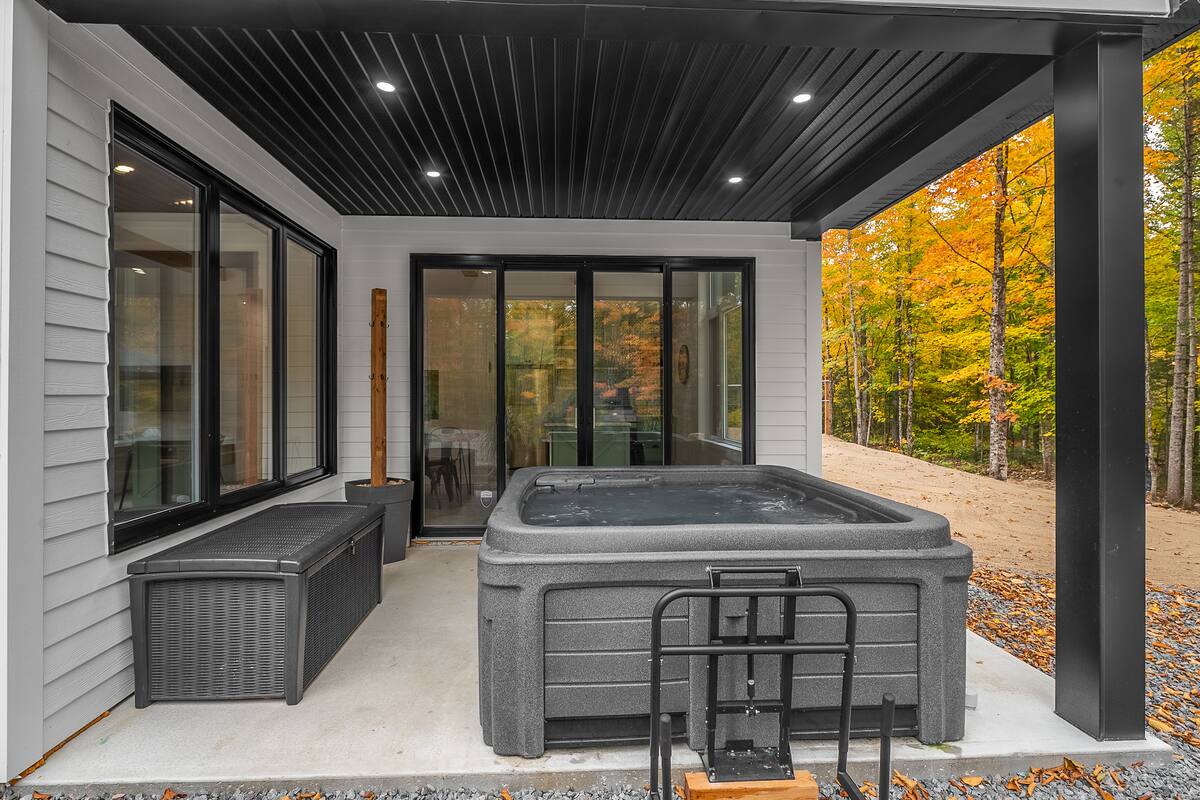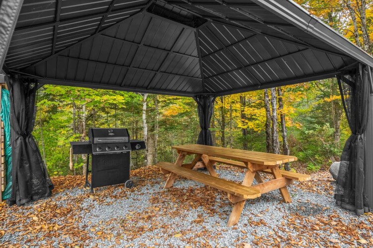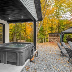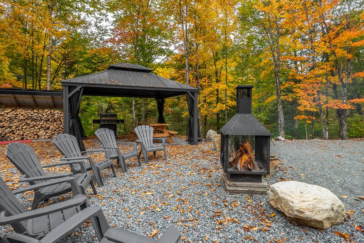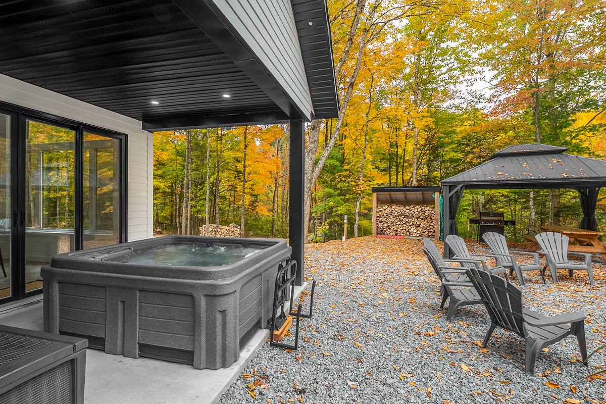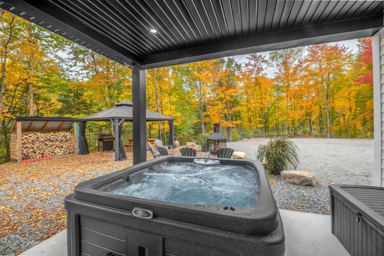 À l’extérieur, vous disposez d’un foyer, d’un coin repas avec gazebo et d’un spa.