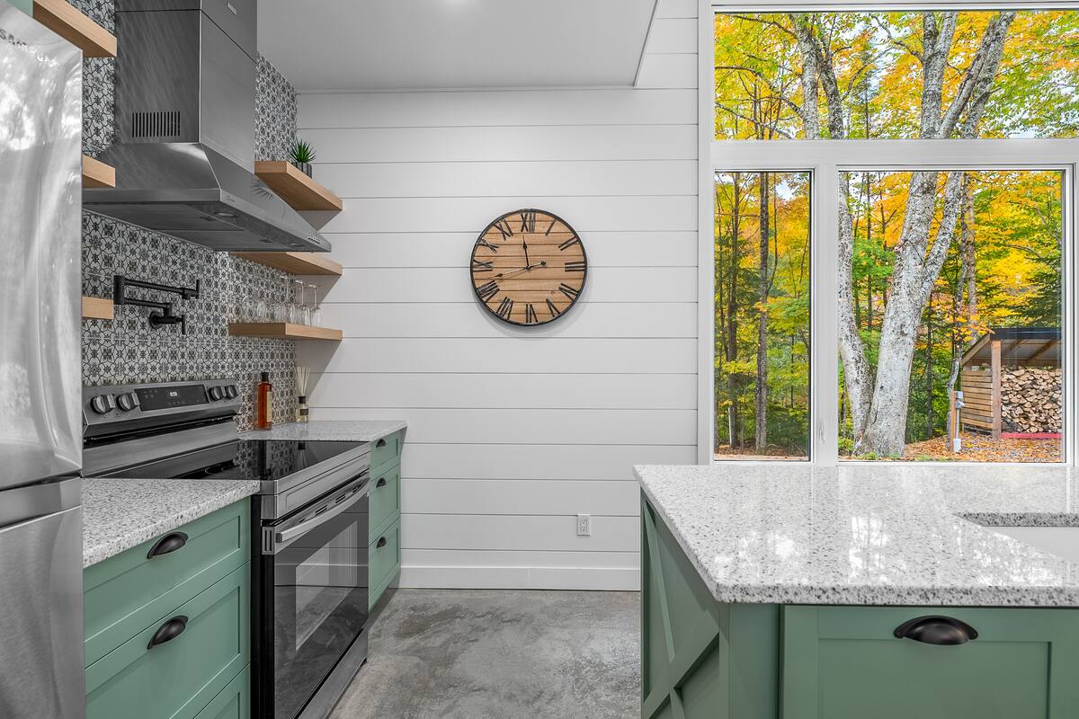 La cuisine est toute équipée et comporte de superbes comptoirs de granite. 3 types de cafetières, lave-vaisselle, ensemble à raclette, ensemble à fondue. etc.