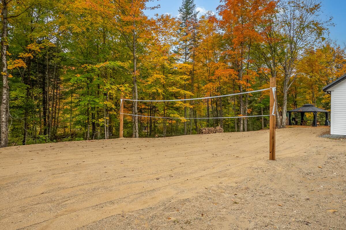 Nous avons un terrain de volley ball sur le terrain.