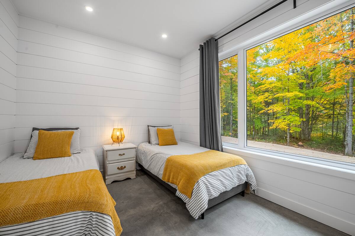 Le chalet est sur un seul plancher. Vous y trouvez 3 chambres à coucher pouvant accueillir 6 personnes.
