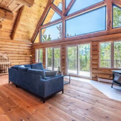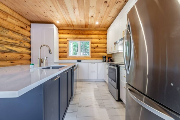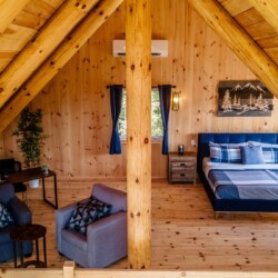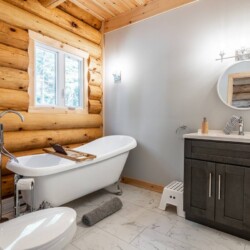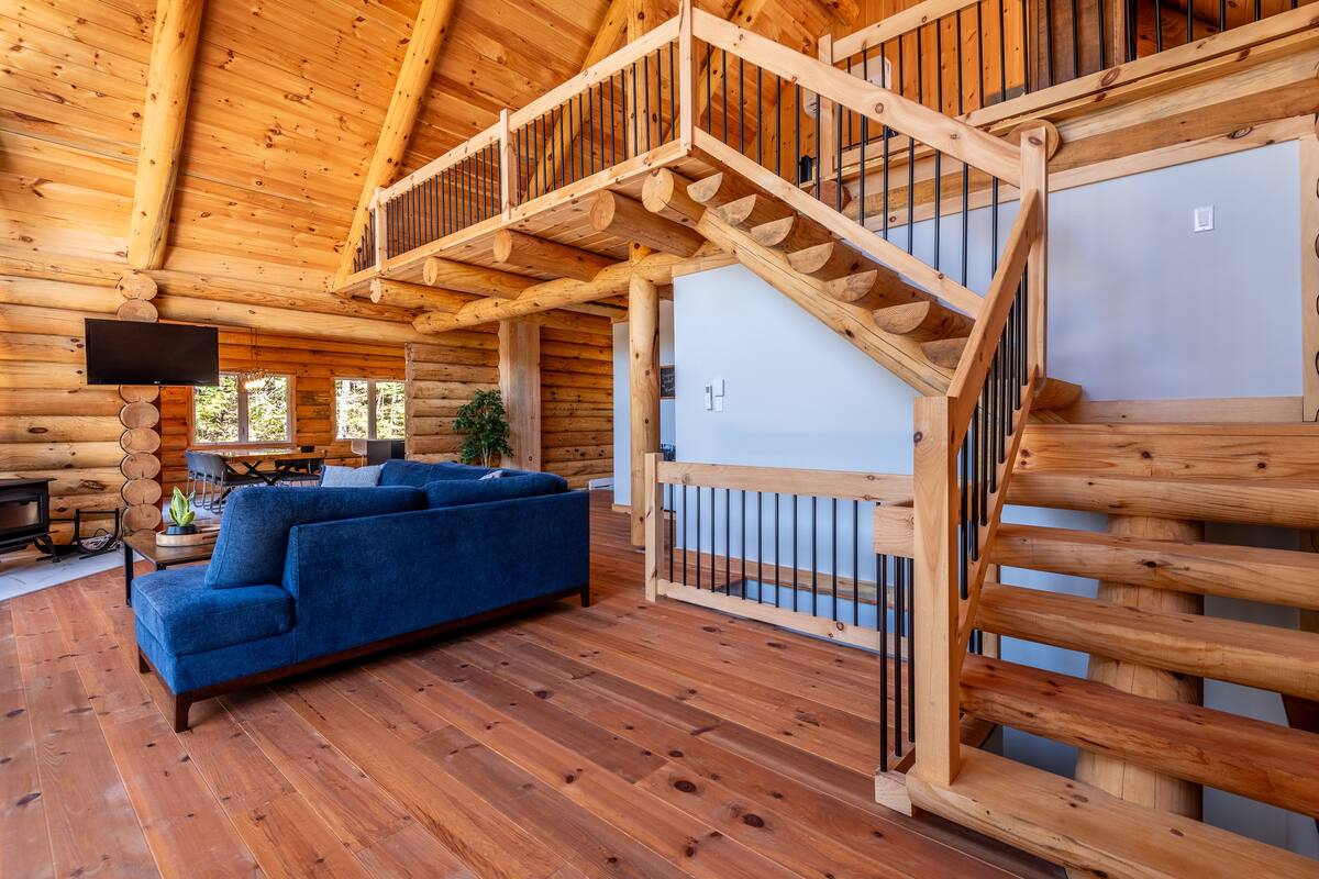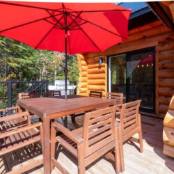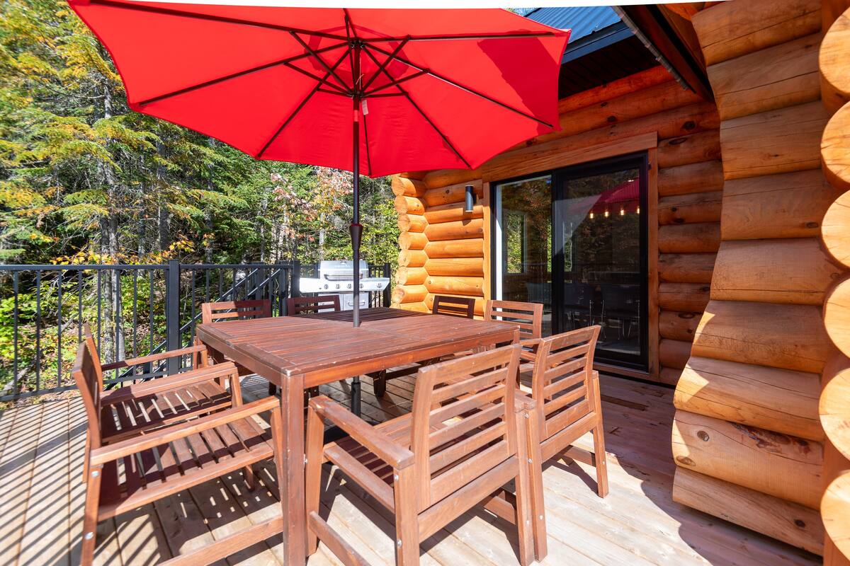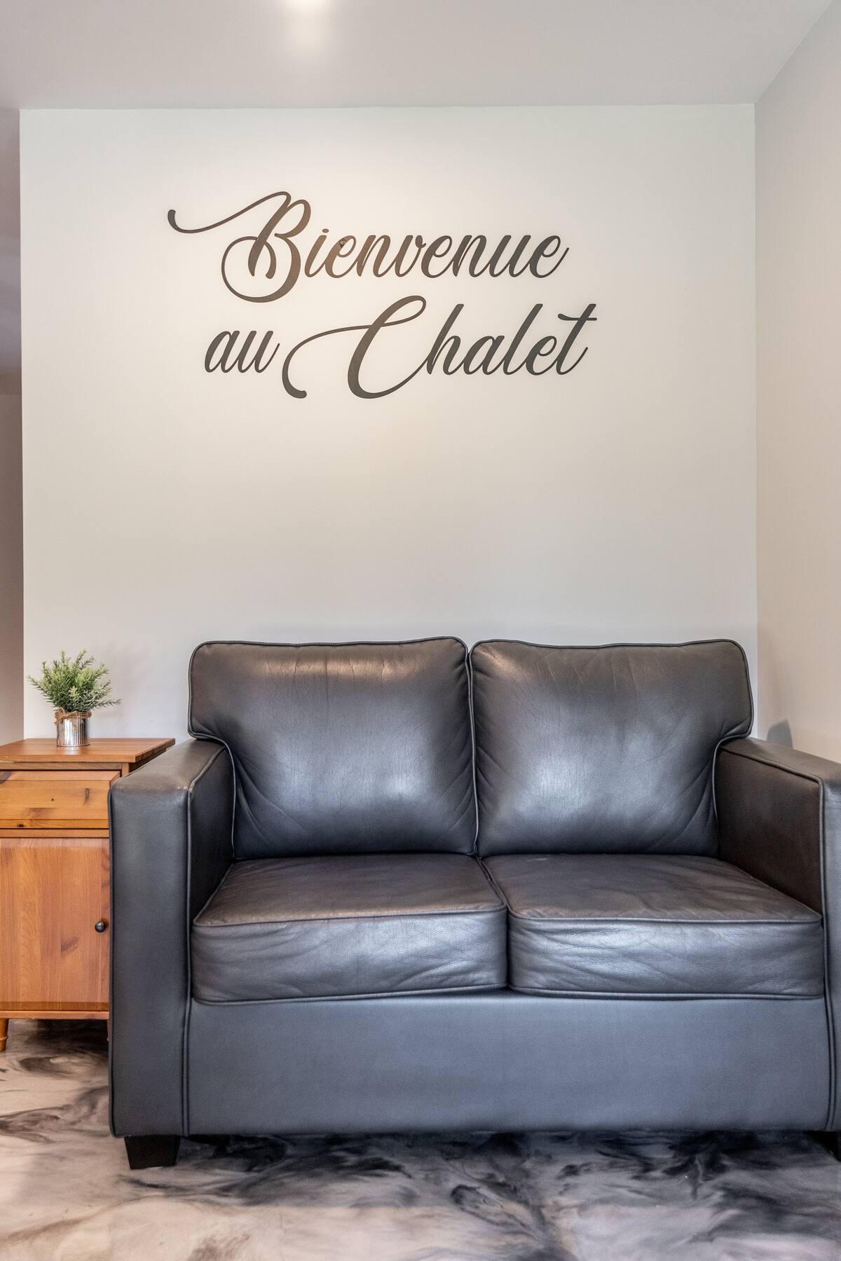 Magnifique chalet en bois rond situé à 1.8km des pistes de ski Val St-Côme qui peut accueillir 12 personnes comprenant 4 chambres, 3 fermés et 1 ouverte sur la mezzanine, 1 divan-lit queen est au salon du rez de jardin.