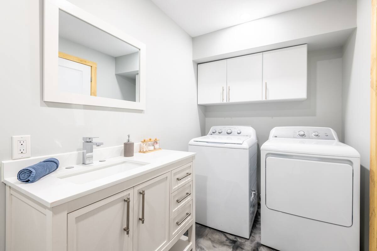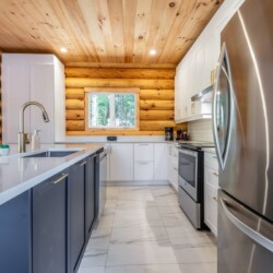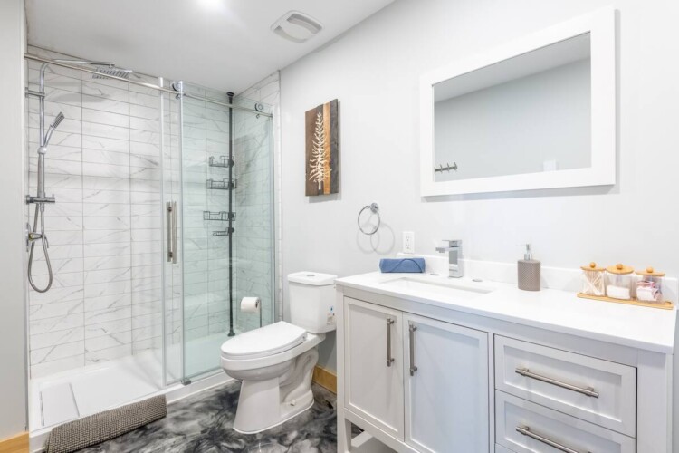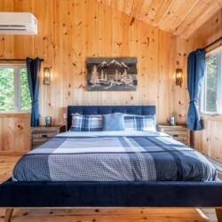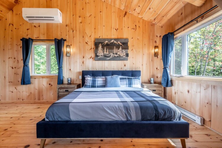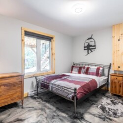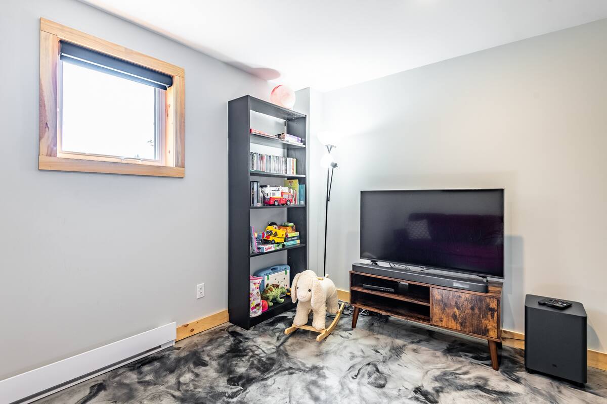 Au rez de jardin, 1 chambre avec un lit queen, une autre chambre avec deux lits doubles, un espace salon avec un divan0lit queen, une salle de bain complète avec laveuse et sécheuse,et un espace commun avec table de billard, au rez de chaussés, espace salon cuisine, salle de bain complète et une chambre lit queen, et une mezzanine ouverte comprenant un lit king, un espace détente et un espace pour le télétravail. Spa et feu extérieur