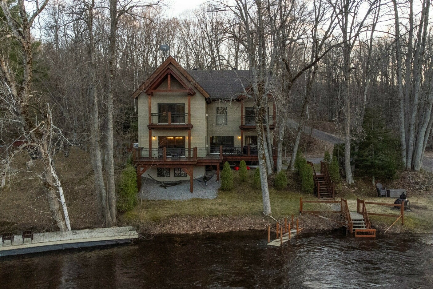 Magnifique chalet luxueux sur le bord de la rivière St-Maurice. À 10 minutes de l’effervescence du centre-ville de Trois-Rivières, le Chalet St-Maurice est un espace convivial et chaleureux qui vous séduira au premier coup d’oeil!