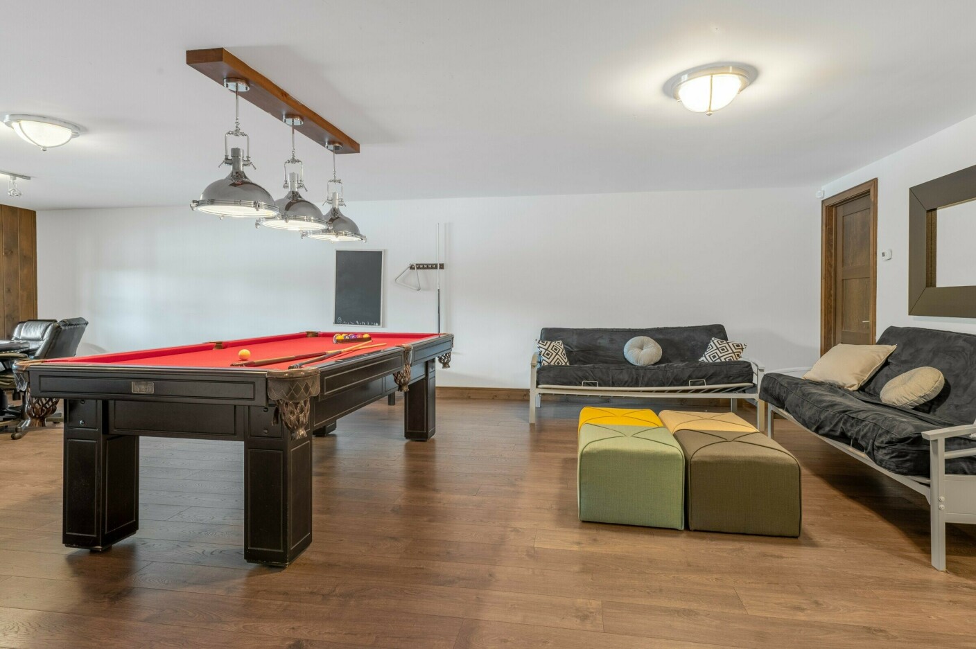 Aire de jeux avec table de billard et table de poker