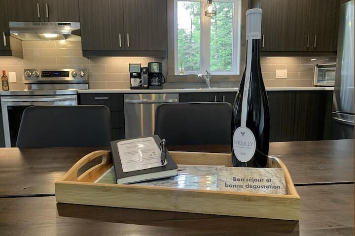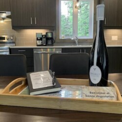 La cuisine est entièrement équipée, une machine à café expresso est à votre disposition ainsi que tous les éléments nécessaires pour votre séjour : micro-ondes, grille-pain, ensemble à raclette, ensemble à fondue, cellier à vin et à boissons, frigidaire, congélateur avec machine à glaces, lave-vaisselle, etc. ! Un barbecue au propane est disponible hiver comme été.