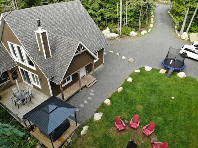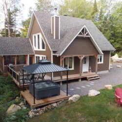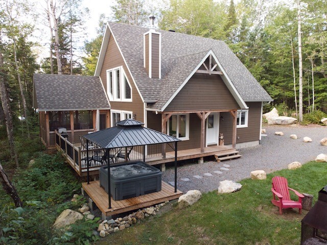 Bienvenue au chalet L’ABRIS DES CEDRES ! Situé en pleine nature à moins d’une heure de Montréal et en bordure de la magnifique rivière Ouareau, ce chalet neuf au style rustique saura vous surprendre par son ambiance hors du commun qui vous fera certainement sortir de votre quotidien ! Amoureux du plein air, cet endroit est pour vous, hiver comme été !
