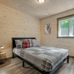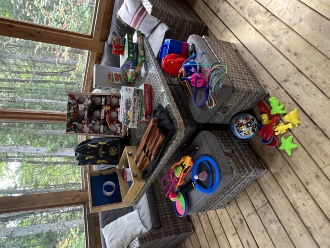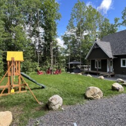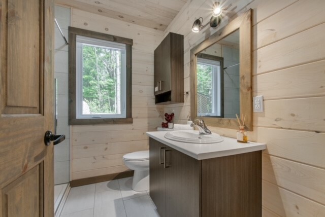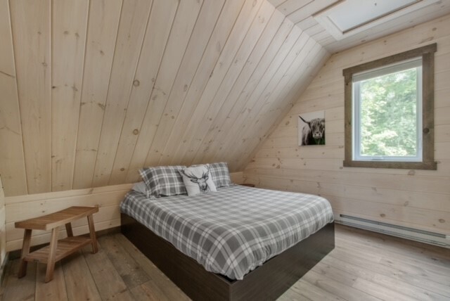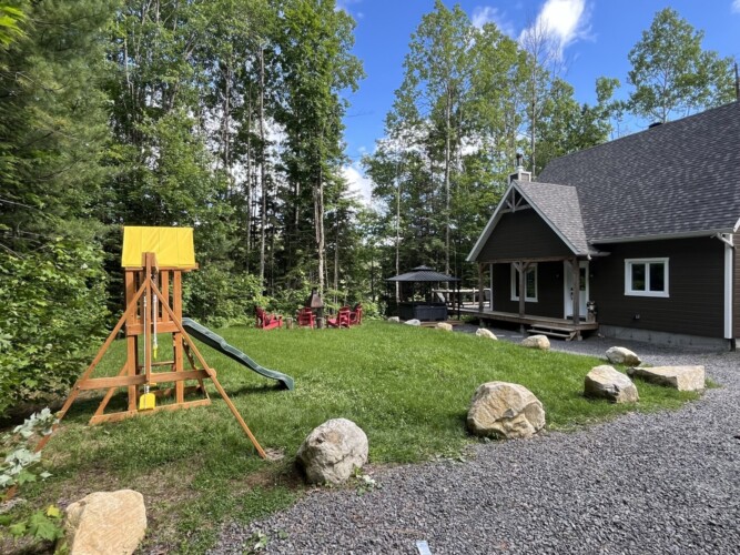 Une chambre avec lit queen, la salle de bain principale ainsi qu’une laveuse et une sécheuse complètent le rez-de-chaussée. Au deuxième étage, on y retrouve une autre chambre avec lit queen ainsi qu’une salle de bain de service. Une grande véranda trois saisons saura vous charmer avec le bruit apaisant de la rivière Ouareau en arrière plan, l’endroit parfait pour relaxer. Dans celle-ci, il y a un grand sectionnel extérieur ainsi qu’une chaise suspendue. Un chauffe-terrasse est aussi à votre disposition pour les soirées plus fraîches ! Il y a également une grande terrasse meublée d’une table patio avec parasol et de chaises ainsi que d’un barbecue (le propane est fourni) . Plusieurs fournitures pour les enfants sont incluses: parc, housse de matelas, deux chaises d’appoint avec tablette, bateau gonflable qui fait office de bain pour la douche, cuillères de bébé, deux bavettes en silicone, bols, assiettes et verres en plastique ainsi que des jeux. Le tout est rangé dans la garde-robe de la deuxième chambre de l’étage principale.