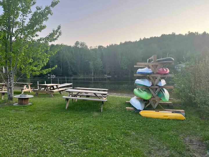 Vous avez aussi accès au lac Lise à 2 minutes à pieds. Il y a une petite plage, un quai, une plate forme flottante au centre du lac et des tables à pique-nique. Notre kayak est mis à votre disposition à cet endroit . Vous avez aussi accès, par les sentiers de randonnée, à des endroits pour vous baigner sur le bord de la rivière Ouareau. En effet, il y a de gros rochers ainsi que des bassins sans courant (semblables aux cascades Rawdon) afin de vous y rafraîchir (l’endroit est indiqué sur la carte remis dans le chalet) !