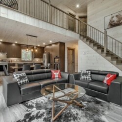 Pour ce qui est du premier salon au rez-de-chaussée, vous y trouverez un foyer à combustion lente ainsi que deux fauteuils en cuir pour vous détendre. Le téléviseur est situé au salon du deuxième étage. Le wifi, Netflix ainsi que Disney plus y sont disponibles.