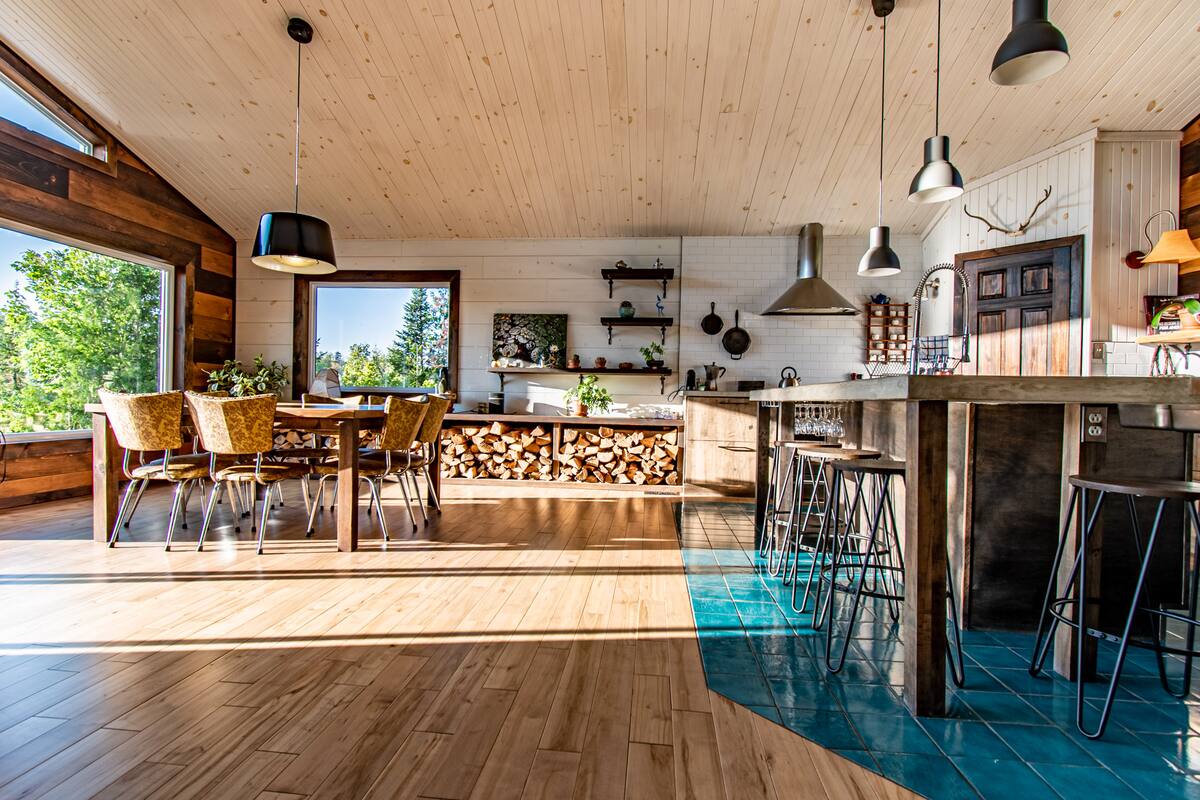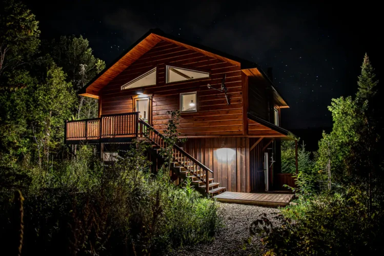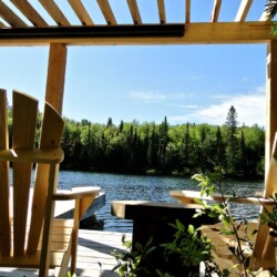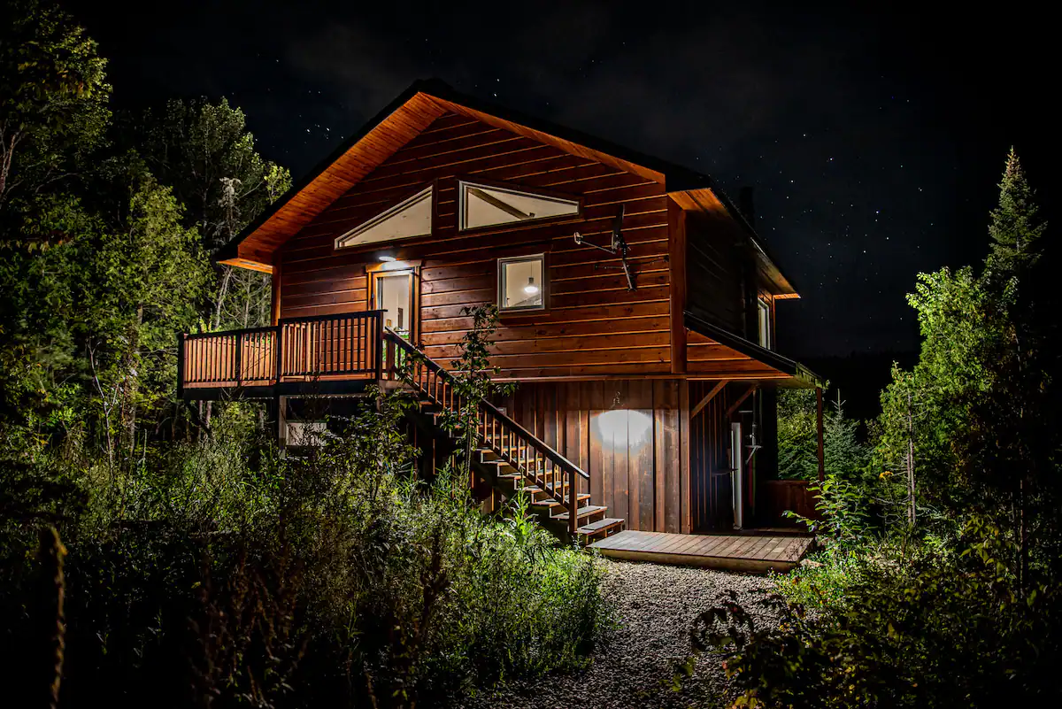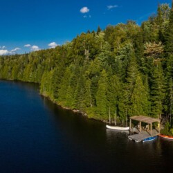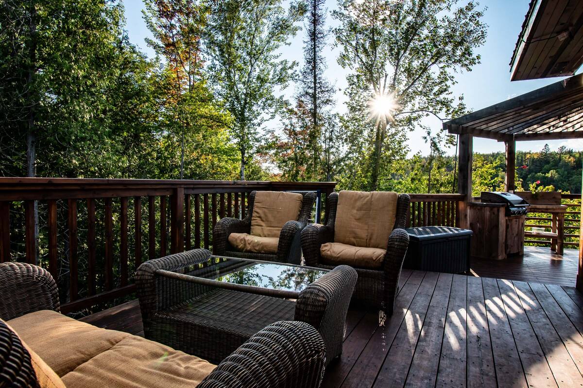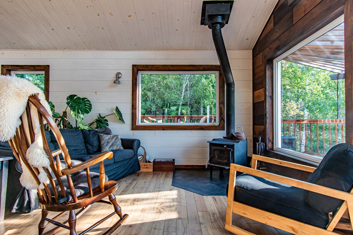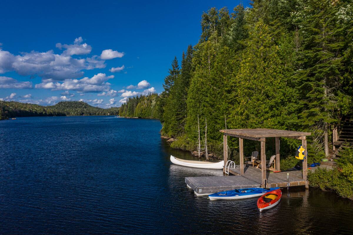 Le chalet est perché sur un grand terrain boisé longeant un lac sans bateau motorisé. Le calme et la nature sauvage avec tout le confort pour des vacances rêvées, incluant un lave-vaisselle, cuisinière au gaz et poêles à bois!