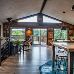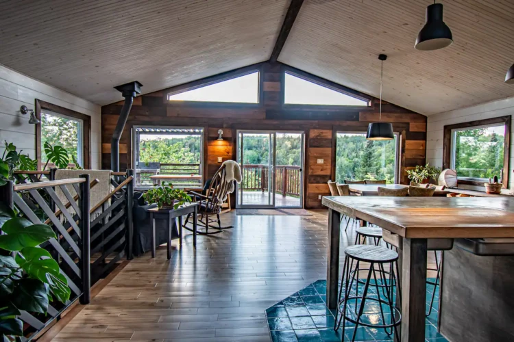 Venez décrocher de la ville dans ce magnifique chalet perché sur un lac sans bateau à moteur dans un espace très boisé et privé. Une vue incroyable et de majestueux balcons. Le chalet comporte trois chambres fermées. Pour baignade, spa , paddle board, canot, kayak, randonnée, ski de fond, ski alpin, raquettes, VTT, motoneiges, ou y travailler à distance!