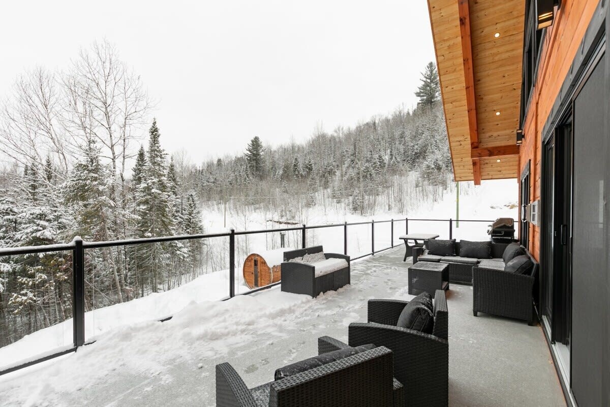 Chalet lumineux, spacieux et chaleureux, parfait pour se retrouver en famille ou entre amis ! âś” 5 chambres confortables : 2 Ă l’étage, 1 au rez-de-chaussĂ©e et 2 au sous-sol âś” 2 salles de bain et de grands espaces communs pour que chacun se sente Ă l’aise âś” SPA & Sauna pour une dĂ©tente absolue âś” Grande terrasse pour profiter du plein air âś” Salle de jeux avec billard et flĂ©chettes âś” Jeux de sociĂ©tĂ© pour petits et grands âś” Foyer intĂ©rieur au gaz & foyer extĂ©rieur au bois (bois fourni) âś” Cuisine entièrement Ă©quipĂ©e : cafetière rĂ©gulière, machine Nespresso, vaisselle, batterie de cuisine, fondue & raclette… âś” BBQ au propane âś” Lit bĂ©bĂ© disponible âś” Climatisation pour un confort optimal âś” Plusieurs tĂ©lĂ©visions intelligentes (Netflix et autres apps disponibles) âś” Stationnement pour au moins 3 voitures 🌿 Venez crĂ©er de merveilleux souvenirs dans un cadre moderne, confortable et entourĂ© de nature !
