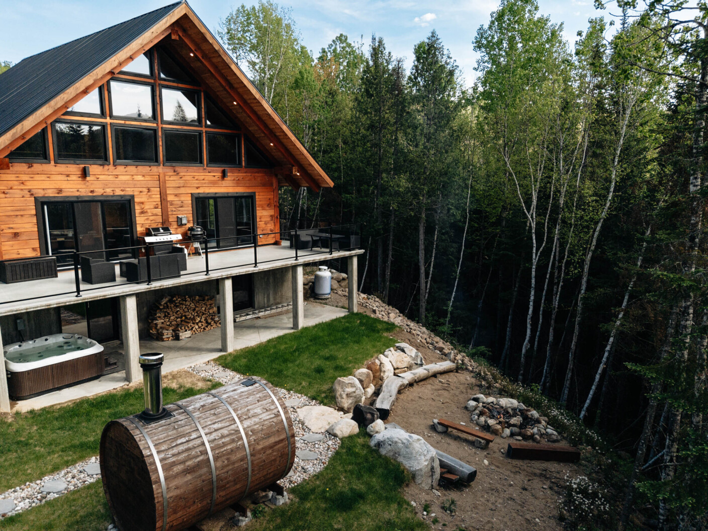 🏡 Que ce soit pour une réunion de famille ou entre amis, pour profiter de la nature ou vous détendre, le CHALET REFUGE CÂLIN saura vous charmer. 🌲 À quelques minutes du Val Saint-Côme, le chalet offre une vue splendide sur la forêt et les paysages naturels. Ses grandes fenêtres vous plongent dans ce cadre apaisant. Profitez des espaces conviviaux, du spa, du sauna et de la vaste terrasse pour savourer chaque instant au cœur de la nature.