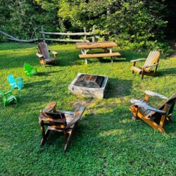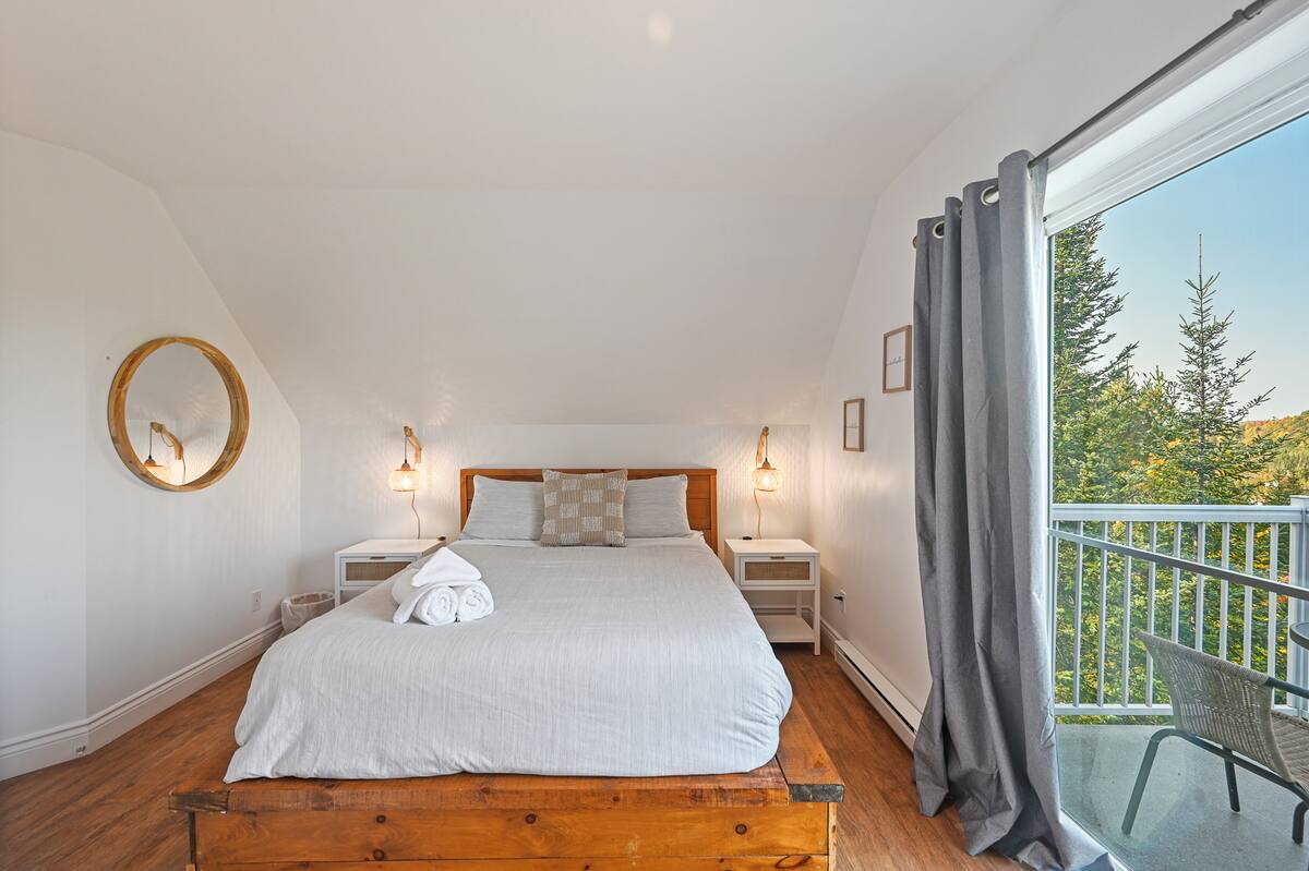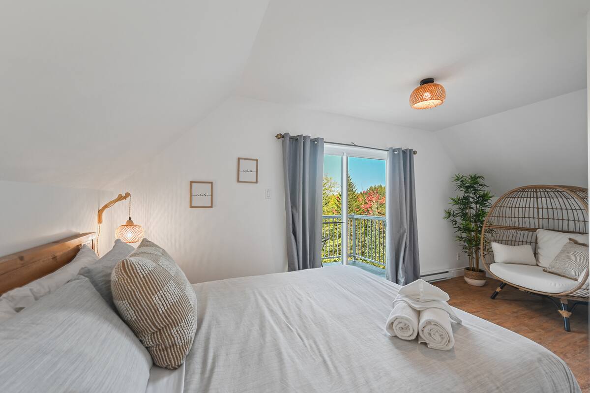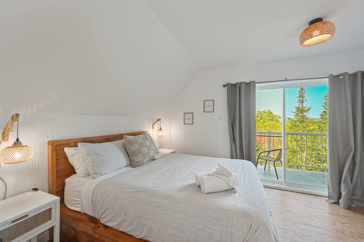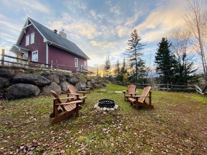 À l’extérieur, deux terrasses vous offrent des vues à couper le souffle, tandis qu’une aire spécialement dédiée aux feux de camp et aux guimauves vous attend pour des soirées chaleureuses sous les étoiles.