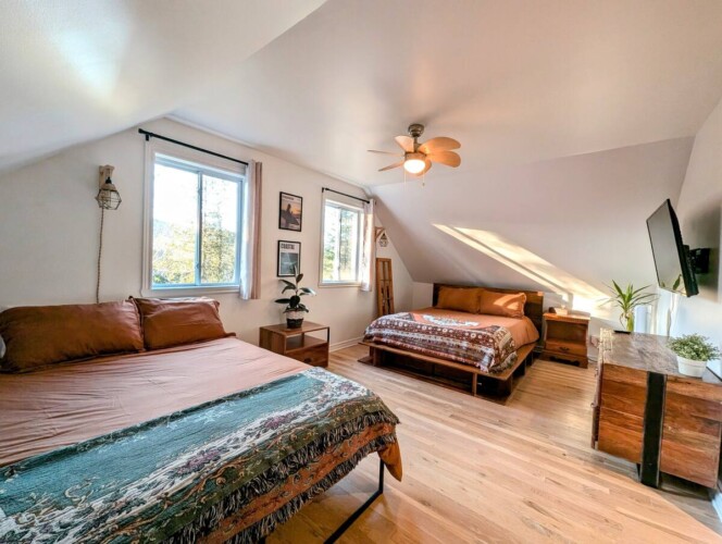 Un chalet authentique et chaleureux qui vous charmera dès votre arrivée! Détendez-vous dans un SPA privé avec vue imprenable sur la rivière, laissez-vous envahir par la lumière naturelle grâce à ses grandes fenêtres et savourez l’air frais depuis la véranda.