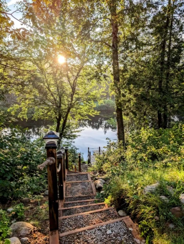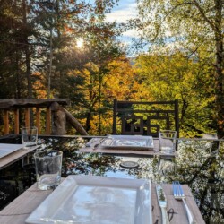 • Un deck en bois au bord de la rivière vous permet d’installer une tente, de faire du yoga ou simplement de savourer un drink en toute tranquillité ! ⛺🧘♂️🍷