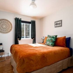– 2 chambres avec lits Queens très confortables, 4 oreillers et draps 800 fils au pouce pour chacun d’eux;