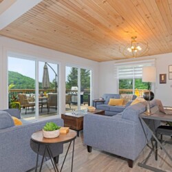 – Séjour spacieux avec télévision connectée, vue panoramique sur le lac et accès direct à la terrasse
