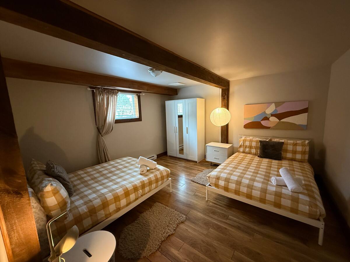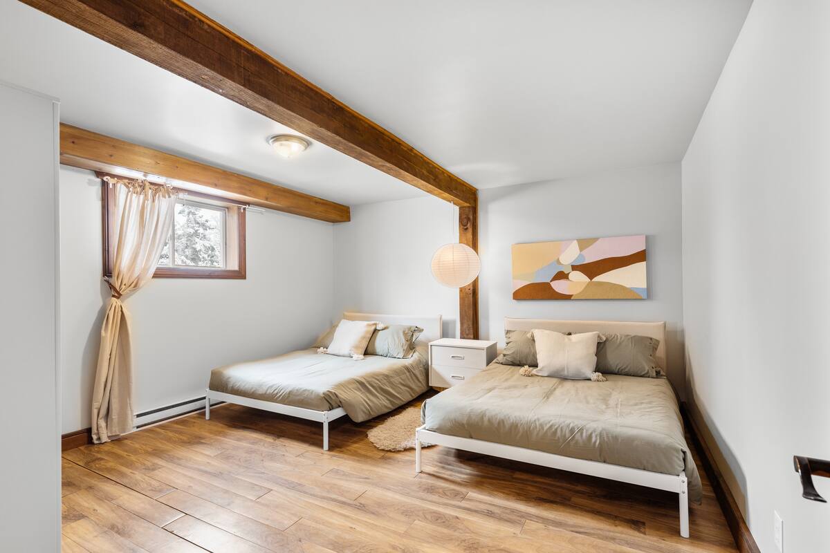 Lanaudière, entouré de nombreux sentiers pédestres et de montagnes de ski. De plus, Il y a une belle plage publique à 500 mètres du chalet.