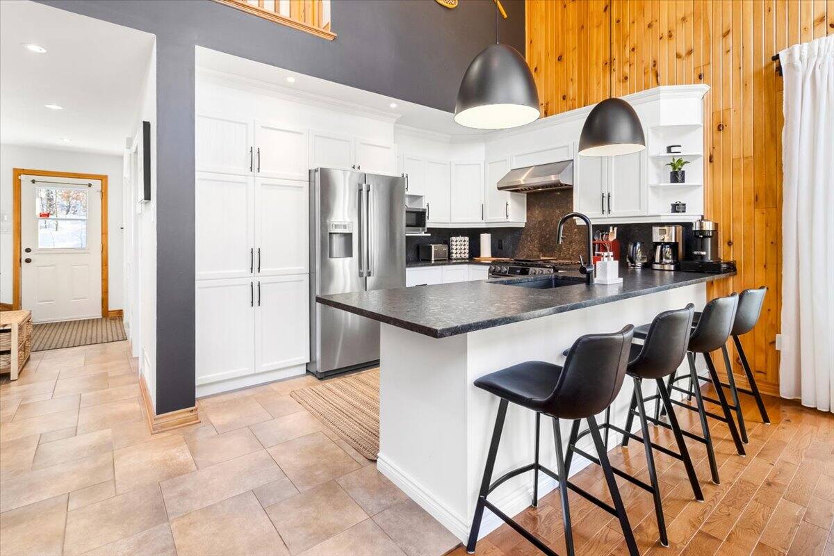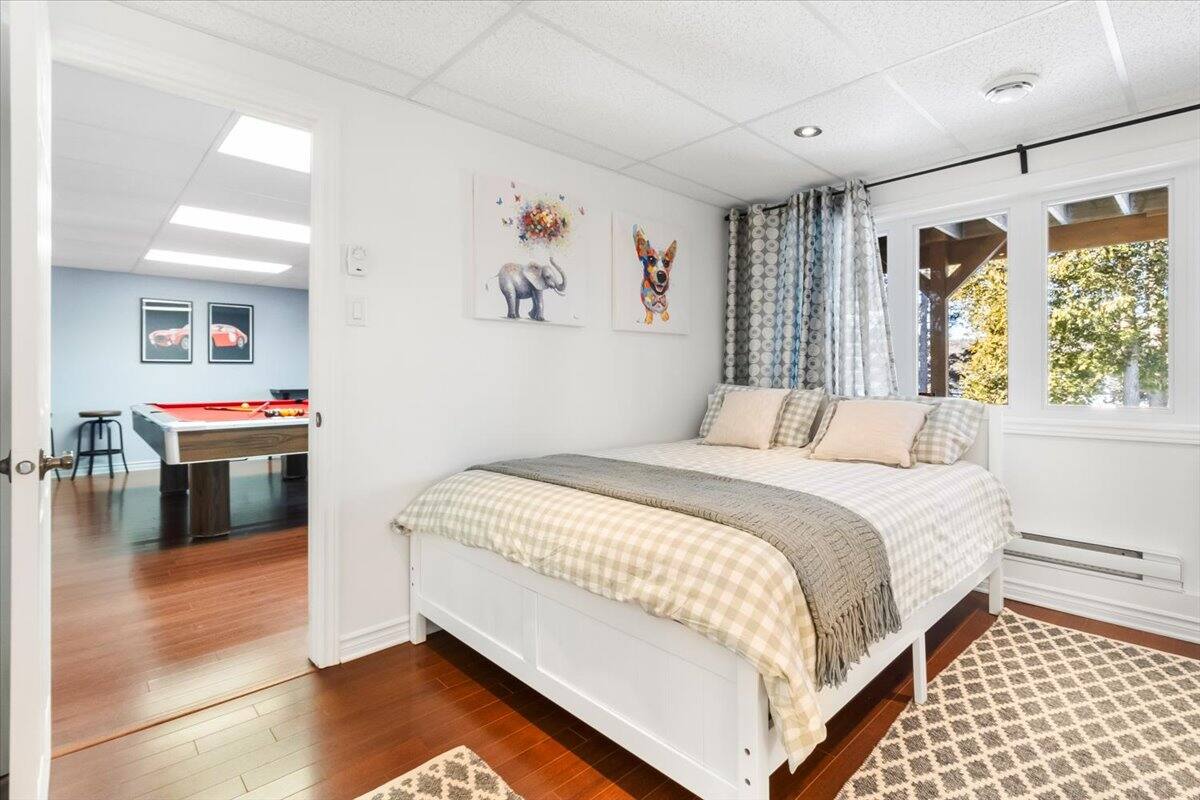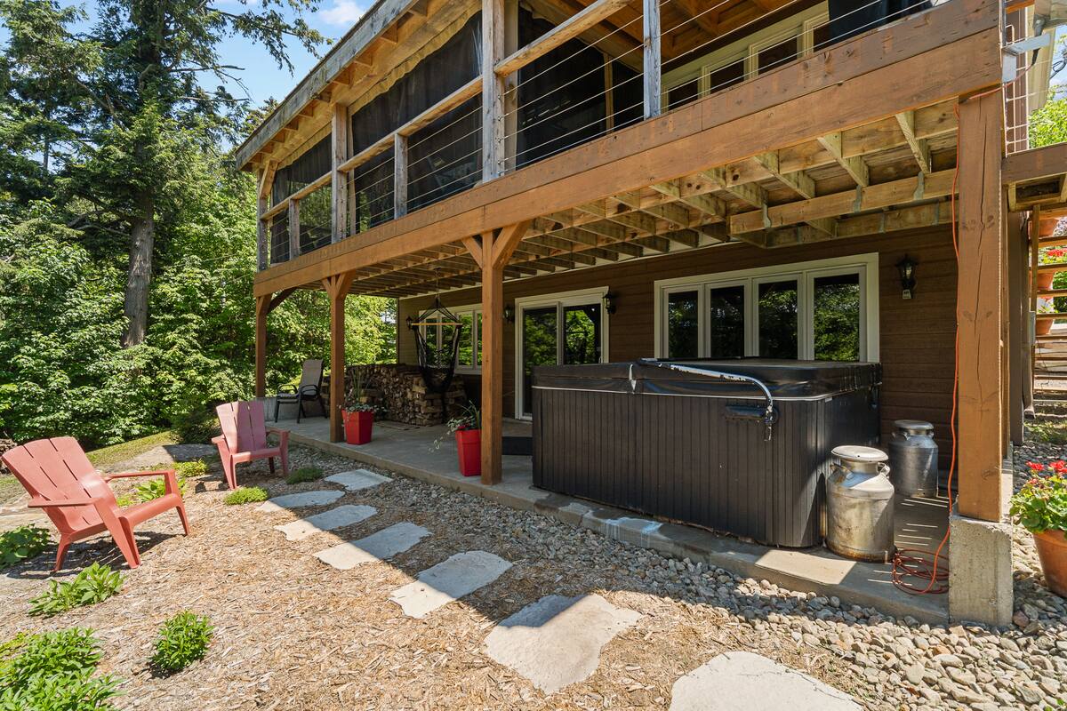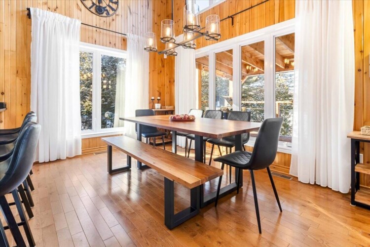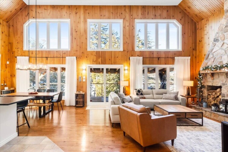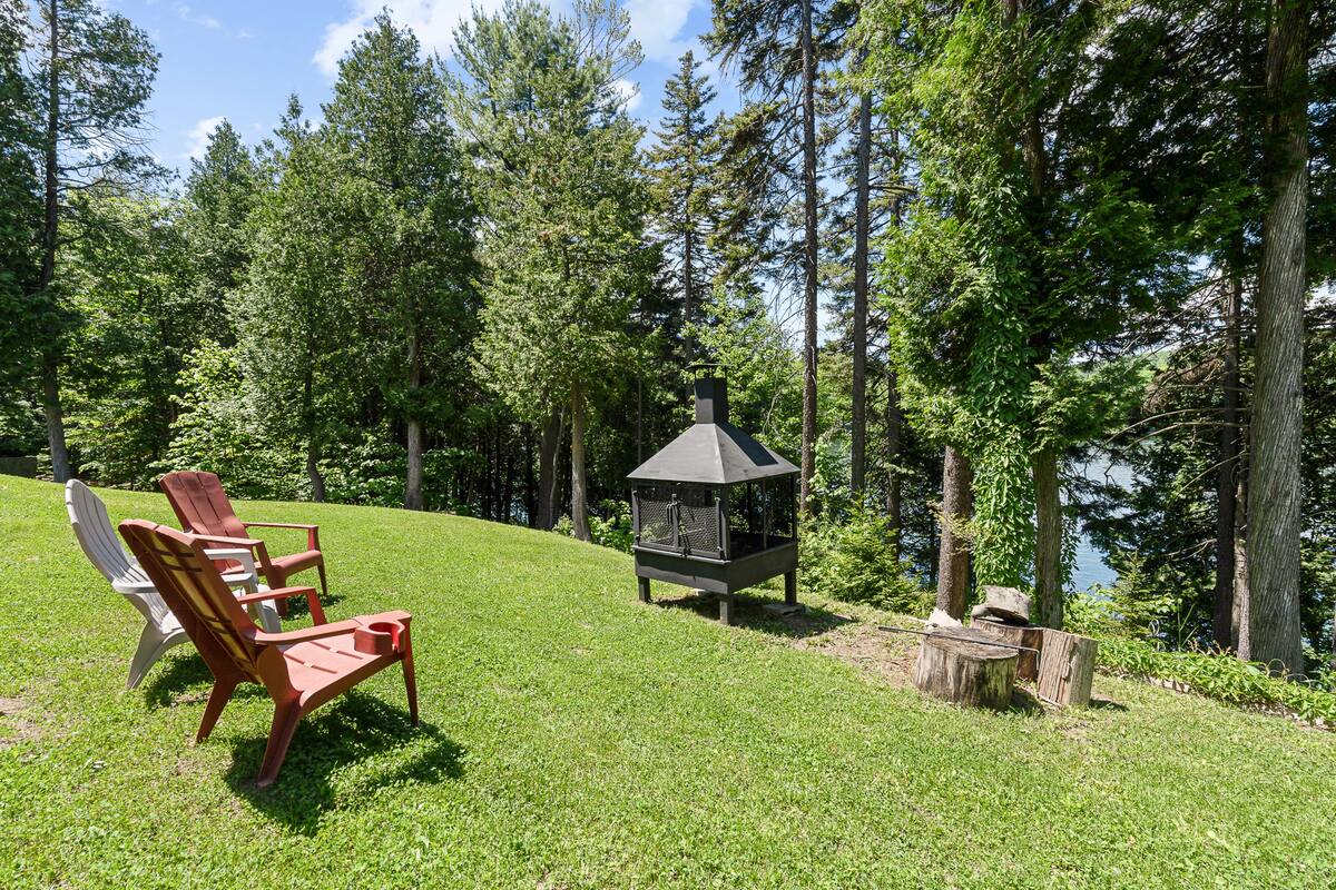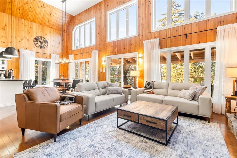 Chalet spacieux au bord du lac Beaulac, baignable et navigable, avec quai privé et embarcations: 2 kayaks adultes, 2 kayaks enfants, pédalo 4 places et un paddle boards gonflable. Profitez d’un spa avec vue spectaculaire. Trois chambres et deux salles de bain peuvent accueillir 6 adultes + 2 enfants. Salon à aire ouverte avec foyer au bois, bureau, salle familiale avec billard et Air Hockey. Cuisine entièrement équipée avec cuisinière à gaz. Terrasse trois saisons avec barbecue.