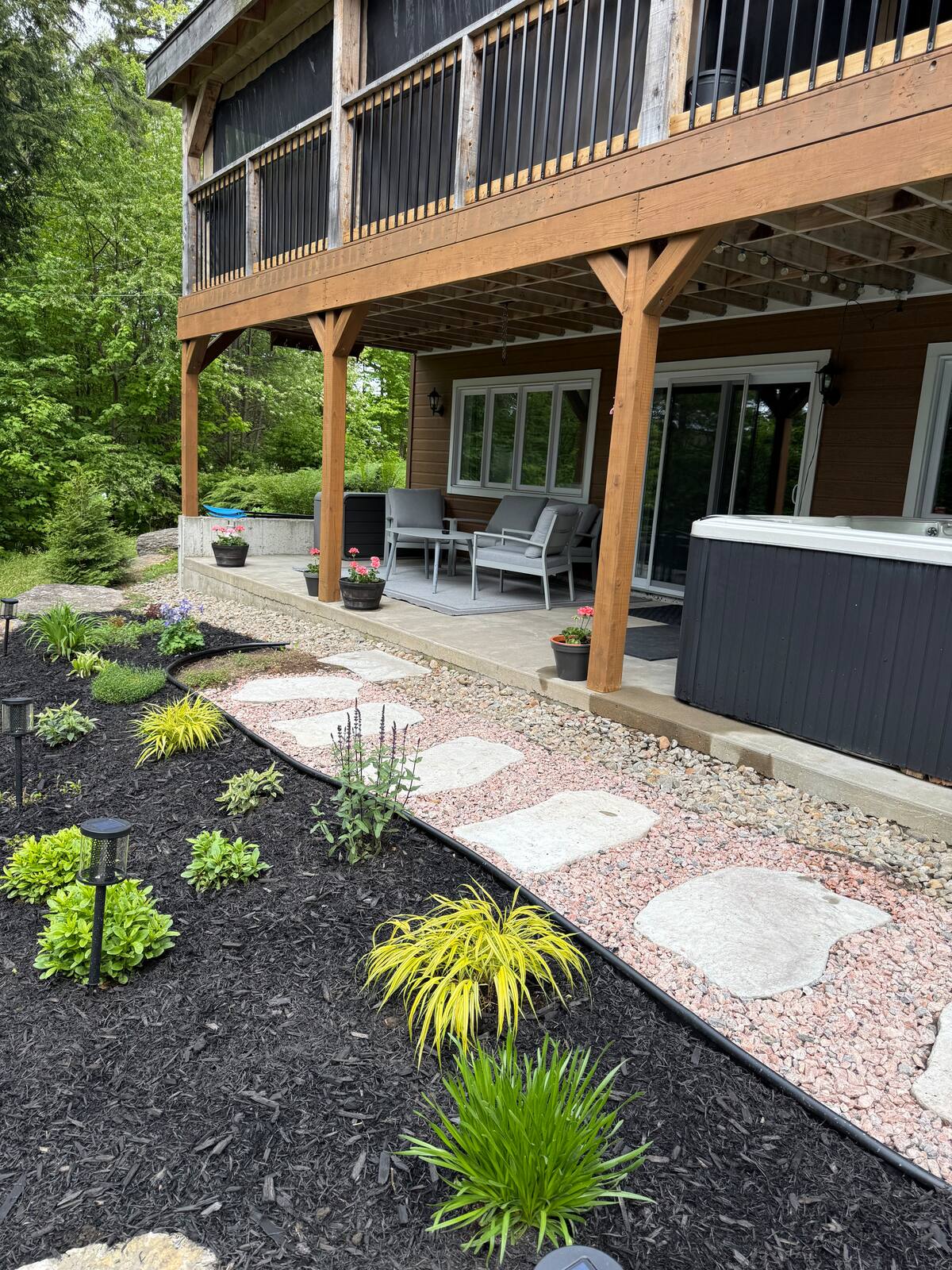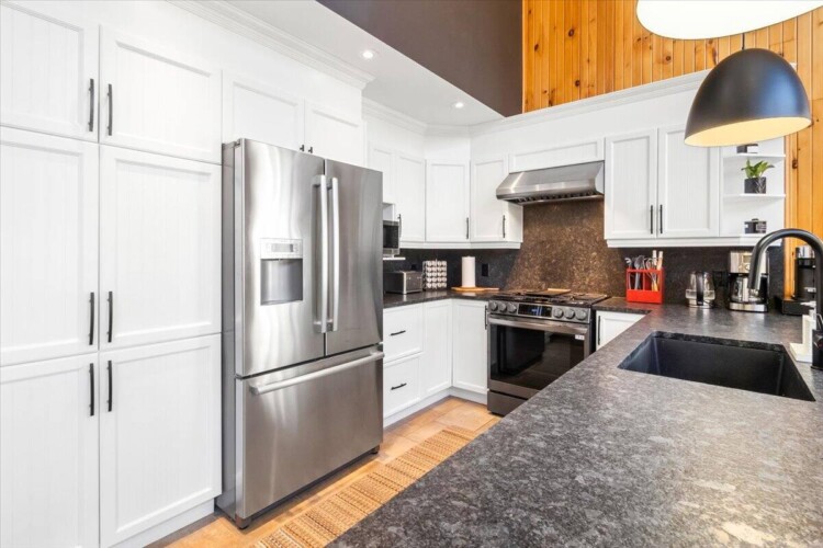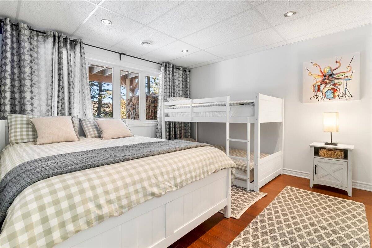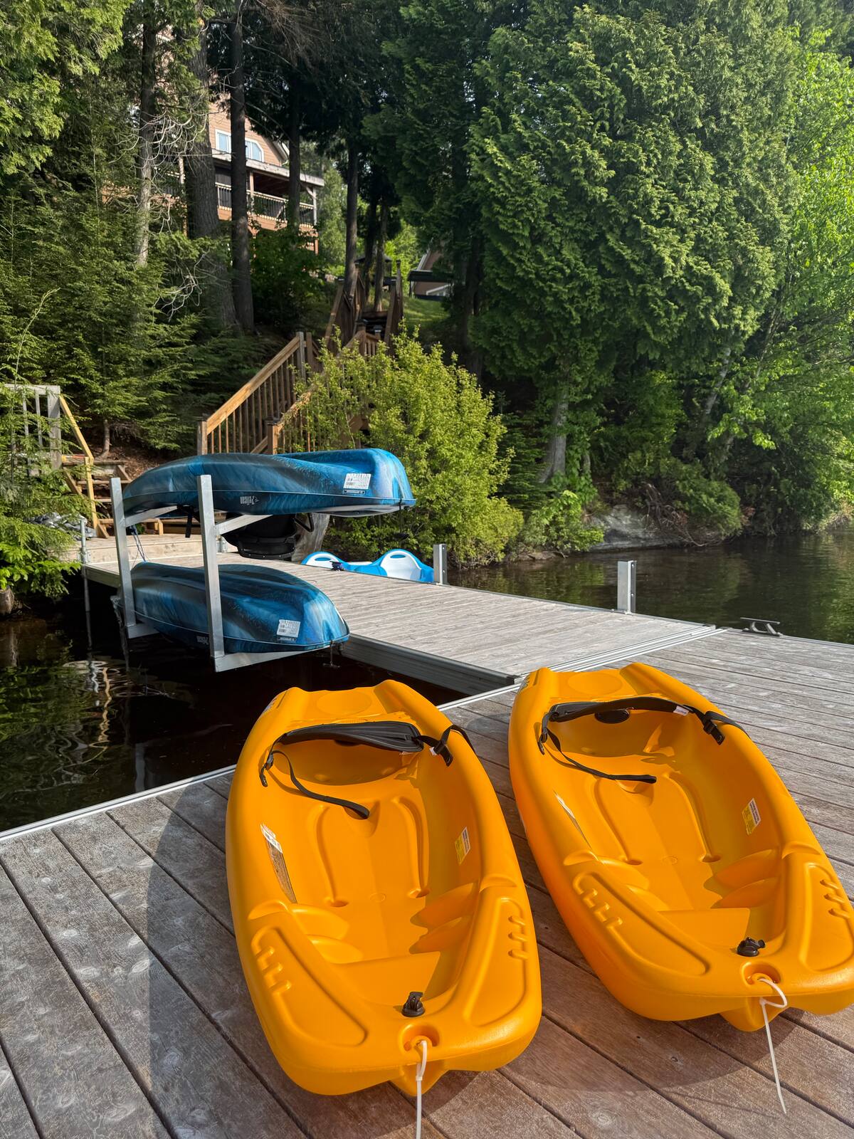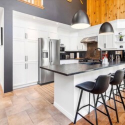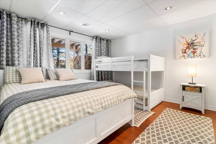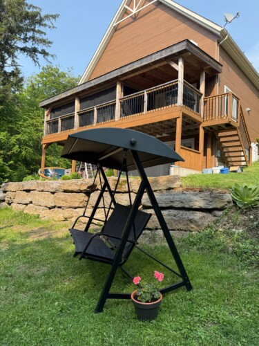 Chalet spacieux au bord du lac Beaulac, baignable et navigable, avec quai privé et embarcations: 2 kayaks adultes, 2 kayaks enfants, pédalo 4 places et un paddle boards gonflable. Profitez d’un spa avec vue spectaculaire. Trois chambres et deux salles de bain peuvent accueillir 6 adultes + 2 enfants. Salon à aire ouverte avec foyer au bois, bureau, salle familiale avec billard et Air Hockey. Cuisine entièrement équipée avec cuisinière à gaz. Terrasse trois saisons avec barbecue.